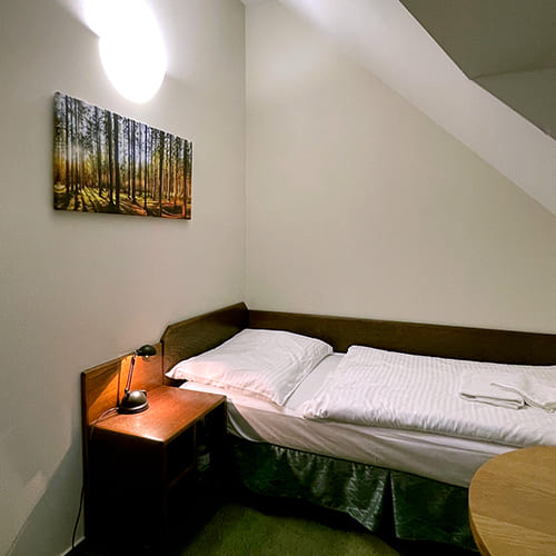 Ojedinělou pozici má u nás náš jediný samostatný pokoj a možností přistýlky. Do soukromí našeho jednolůžka můžete vyhostit třeba hlasitě chrápajícího příbuzného.