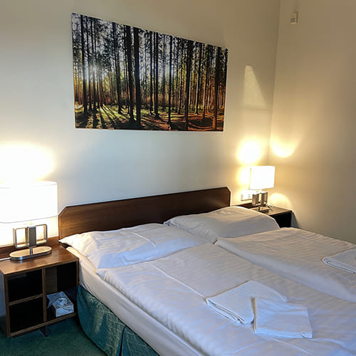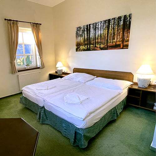 Dvoulůžkových pokojů se soukromou koupelnou u nás najdete hned deset. Vyspí se zde páry i rodiny s dítětem.